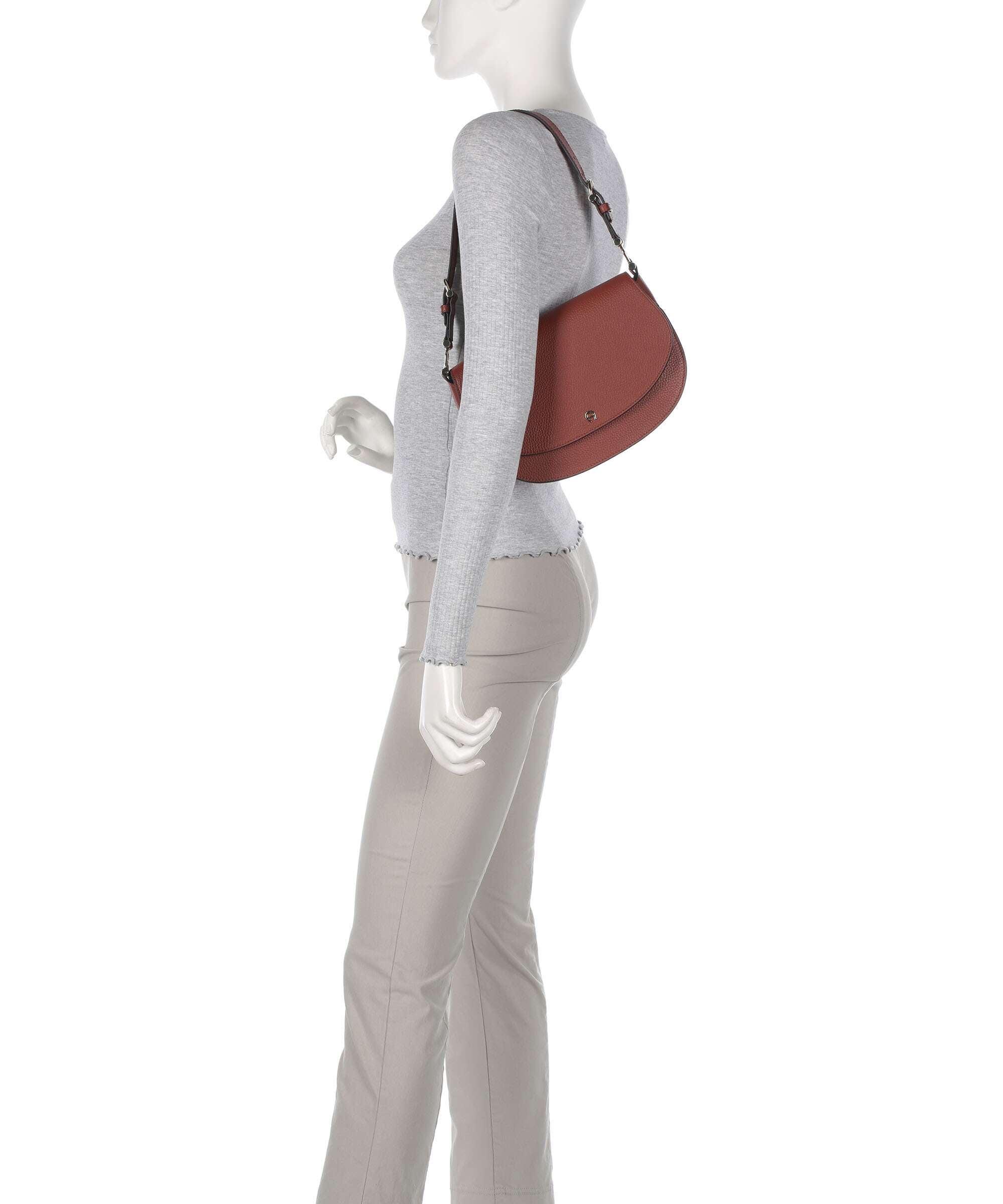 Delia S Shoulder bag grained cow leather dark cognac